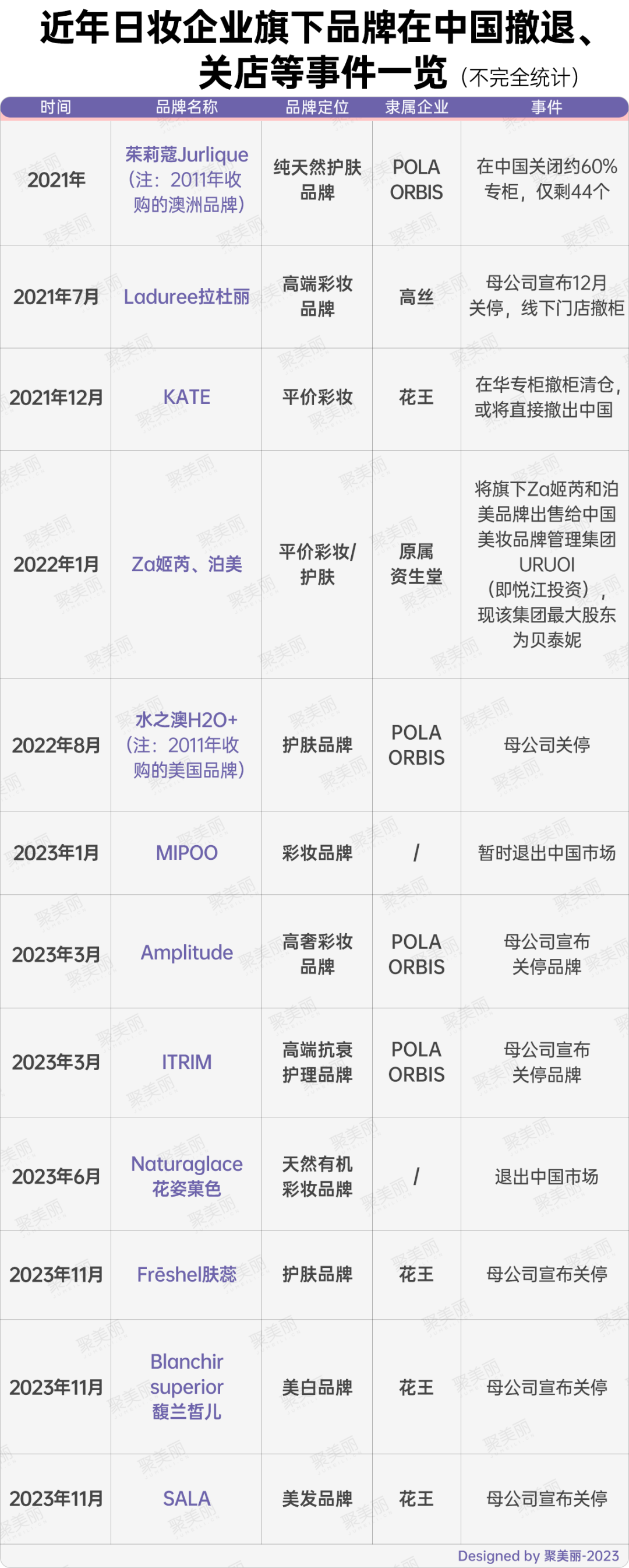 近年来,叠加疫情等因素的影响,日系美妆关店、撤出中国的事儿并不鲜见。比如,花王旗下平价彩妆品牌KATE,据北京商报在2021年12月报道称,彼时正在华专柜撤柜清仓,或将直接撤出中国。