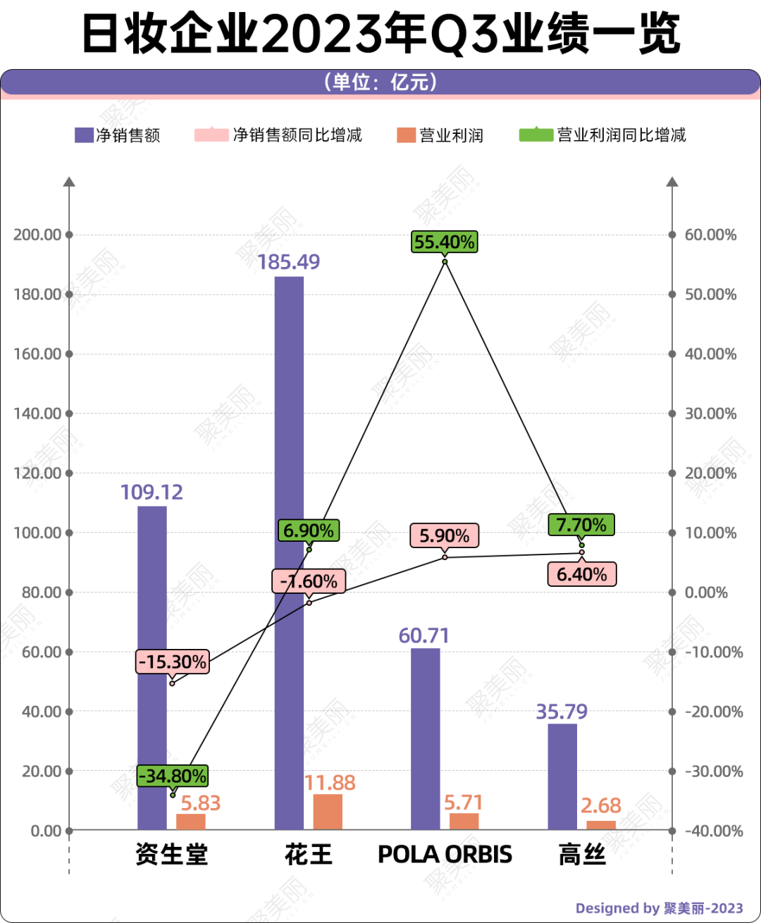 日前,资生堂、花王、POLA ORBIS、高丝等都发布了今年前三季度财报。从财报数据来看,除了资生堂净销售额、营业利润双下滑外,其余三大日妆企业在第三季度的业绩大体上呈增长。