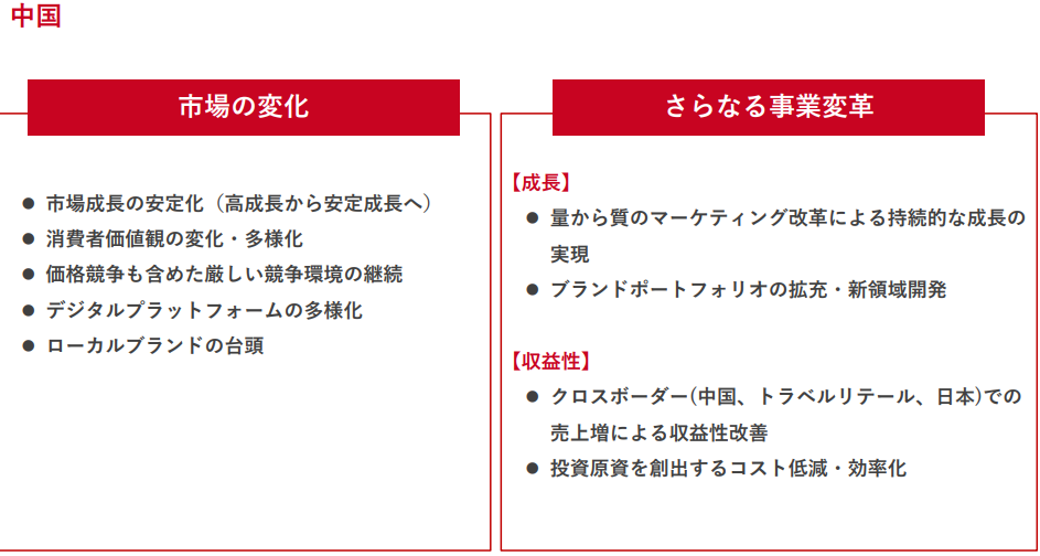 基于此,资生堂在财报中也提出了针对中国市场未来三年的事业变革策略。在企业发展方面,资生堂有三大策略:通过量化营销改革实现持续增长、扩展品牌组合、开发新领域;在企业收益方面,通过增加销售(中国、旅游零售、日本)高盈利能力、降低创造投资资本的成本来提高盈利能力。