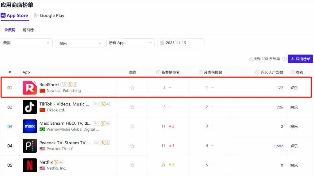 相对于国内目前短剧市场激烈竞争的情况,海外短剧市场目前仍处于起步阶段。前段时间,中文在线打造的短剧APP——Reelshort,10月份的下载两就达到了225万次,流水达到了350万美元,而且一度超越TikTok,成为了美区iOS娱乐榜第一,“霸道总裁爱上我”等桥段果然是全人类的爽点,也让不少短剧行业人员看到了出海掘金的希望。
