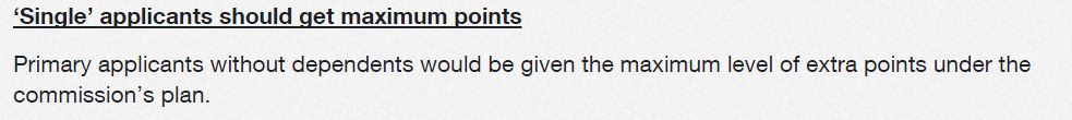 暂且先不说建议是否会被采纳,在这一项的细则里的英文描述中“Single applicants ”指的是“Primary applicants without dependents ”(无需抚养他人的申请者),被误读成单身可见是个翻译失误。当然,侧面也说明“单身狗”太热门,为了圈流量,营销号们也是想方设法在标题上动心思。