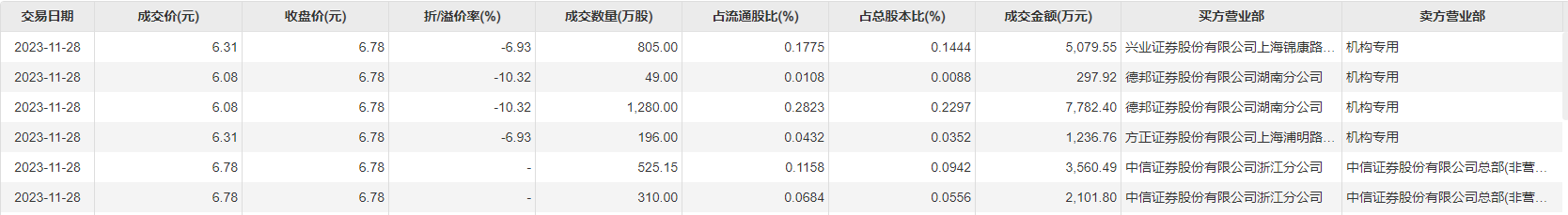 11月28日,北汽蓝谷今日大宗交易成交3165.15万股,成交额2.01亿元,占当日总成交额的5.23%,成交均价6.34元,较市场收盘价折价6.49%,其中最高成交价6.78元,最低成交价6.08元。