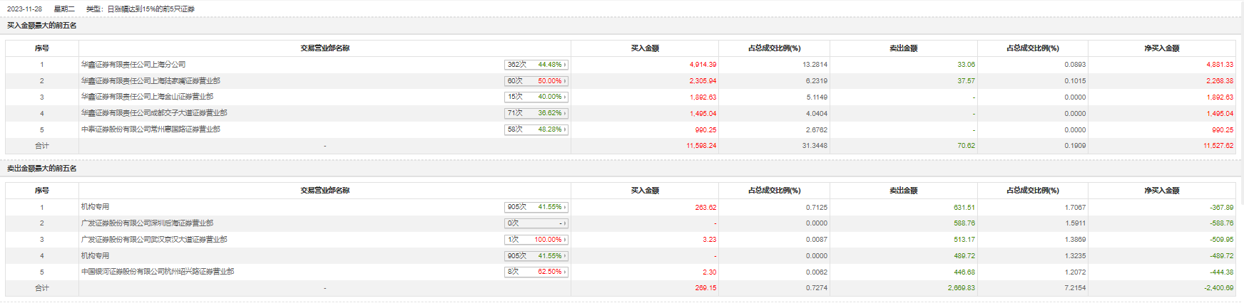 11月28日,瑞丰光电今日涨停,全天换手率达10.21%,振幅达19.34%。龙虎榜数据显示,营业部席位合计净买入9126.93万元。其中,机构买入263.62万元,卖出1121.23万元,合计净卖出857.6万元。此外,华鑫证券上海分公司、华鑫证券上海陆家嘴证券营业部分别买入4914.39万元、2305.94万元;广发证券深圳后海证券营业部、广发证券武汉京汉大道证券营业部分别卖出588.76万元、513.17万元。