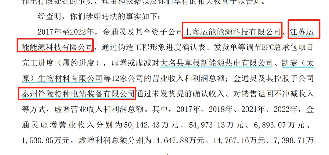 经查明,2017年至2022年,金通灵及其三家子公司维持了长达6年的财务造假,累计虚增营业收入9.3亿元,虚增利润总额4.3亿元。公司的董事长、财务总监、总经理助理、1名董事均有参与其中。