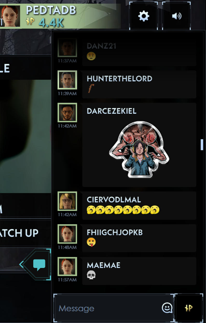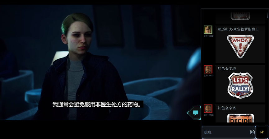 像表情这种就只能在聊天室里用用,除此之外没任何用处。《飞升》允许玩家在看“剧”时候参与到其中唠唠嗑,和Twitter直播如出一辙。然而做得却远远不如直播平台,由于《飞升》内并没有完善的“聊天过滤”或者“超管”这样的服务,在剧集播出的第一天,聊天室内可以说是“地狱绘图”,所以官方在第二天把文字聊天禁了。