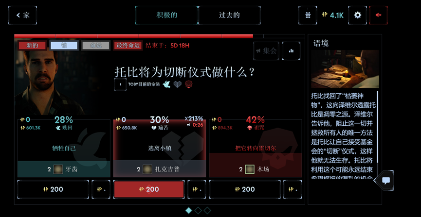 因为剧情的走向并不取决于有多少人选择了这个分支。而是取决于影响力最多的那个选项。选择角色的某些定制选项以及参与投票决定路线,都需要花费玩家手中的IP(影响力)点。