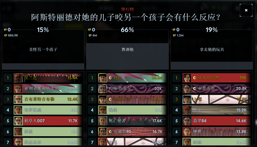 《飞升》还专门搞了个影响力排行榜,看看谁才是真正的“傍一富哥”。在一次分支选择中,这名叫做“科巴”的用户花费了2万6的影响力,这2万6差不多能让他氪个140多元。