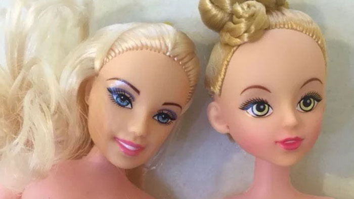 为了能更方便地被插进蛋糕里,芭比的腿被做得像筷子那么细,看起来特别恐怖。▼