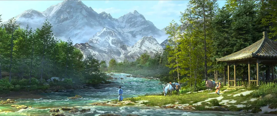 从近几年的出圈作品来看,很多都是依托于从传统文化中获取灵感,然后融合现代思维进行创新创作。例如《长安三万里》在电影制作方面将唐风与诗集结合到一起,其中的场景、装束、建筑等都参考了文献记录,人物也参照唐代绘画和陶俑的造型比例进行塑造。还有《白蛇2:青蛇劫起》,也是在民间故事《白蛇传》的基础上进行二次创作。再看《中国奇谭》,8个小故事中集合了水墨、3D、传统手绘、剪纸等传统元素,或许在视觉观感上有着现代动画的“工业痕迹”,但从叙述手法到故事内核上都是原汁原味的动画作品。