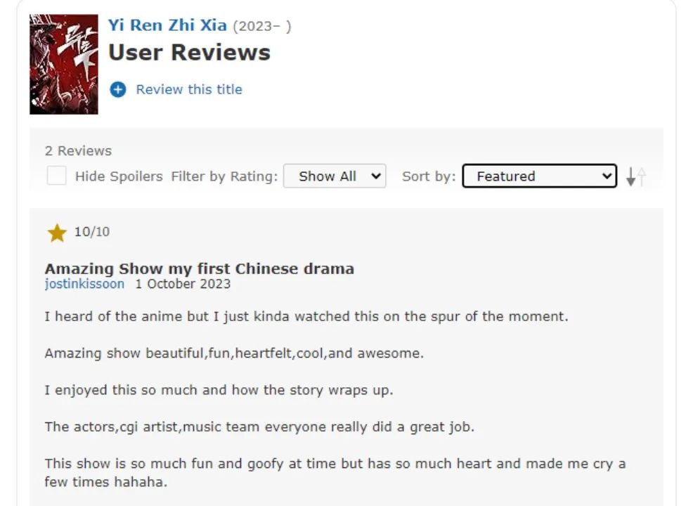 不少人都和小燃有着类似的想法,但或许原著党也难以抗拒诱惑,《异人之下》自开播热度就持续走高。尽管《一人之下》宣布影视化之初,也被粉丝们直接惯性定义:又是一部魔改的烂剧。但当前四集播出,并且接连经历了剧情的大幅改动、剧集的停播等几重风波后,豆瓣评分却仍然超过了8分。在国内表现出色的《异人之下》,在全球电影资料库IMDb评分也一度高达9.4,目前稳定在7.4评分。