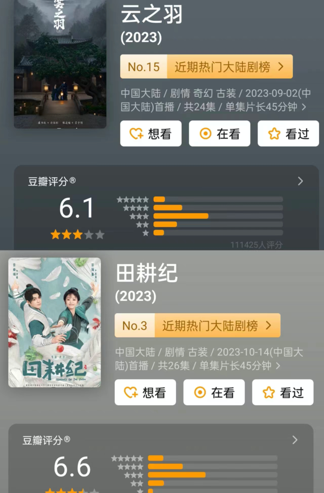 除了意外变成“表情包”的张凌赫离大爆终究还差一口气,今年的偶像剧女主们也不好过,《长月烬明》的白鹿、《玉骨遥》的任敏、《七时吉祥》的杨超越都曾因外貌或演技引发争议;手握《护心》《为有暗香来》两部古偶剧的周也并非当下流行的“小白花”款,因此角色出圈力度有限;去年凭借《卿卿日常》《苍兰诀》大爆成为热门95花的田曦薇、虞书欣今年的作品也不及预期,《花轿喜事》《田耕记》《云之羽》的豆瓣评分分别为4.2、6.6、6.1。有了流量小花参与的经典IP翻拍、种田文、古装谍战均“雷声大雨点小”,反而是古装喜剧如《兰闺喜事》《雀刀门传奇》成为了今年古装剧的黑马。