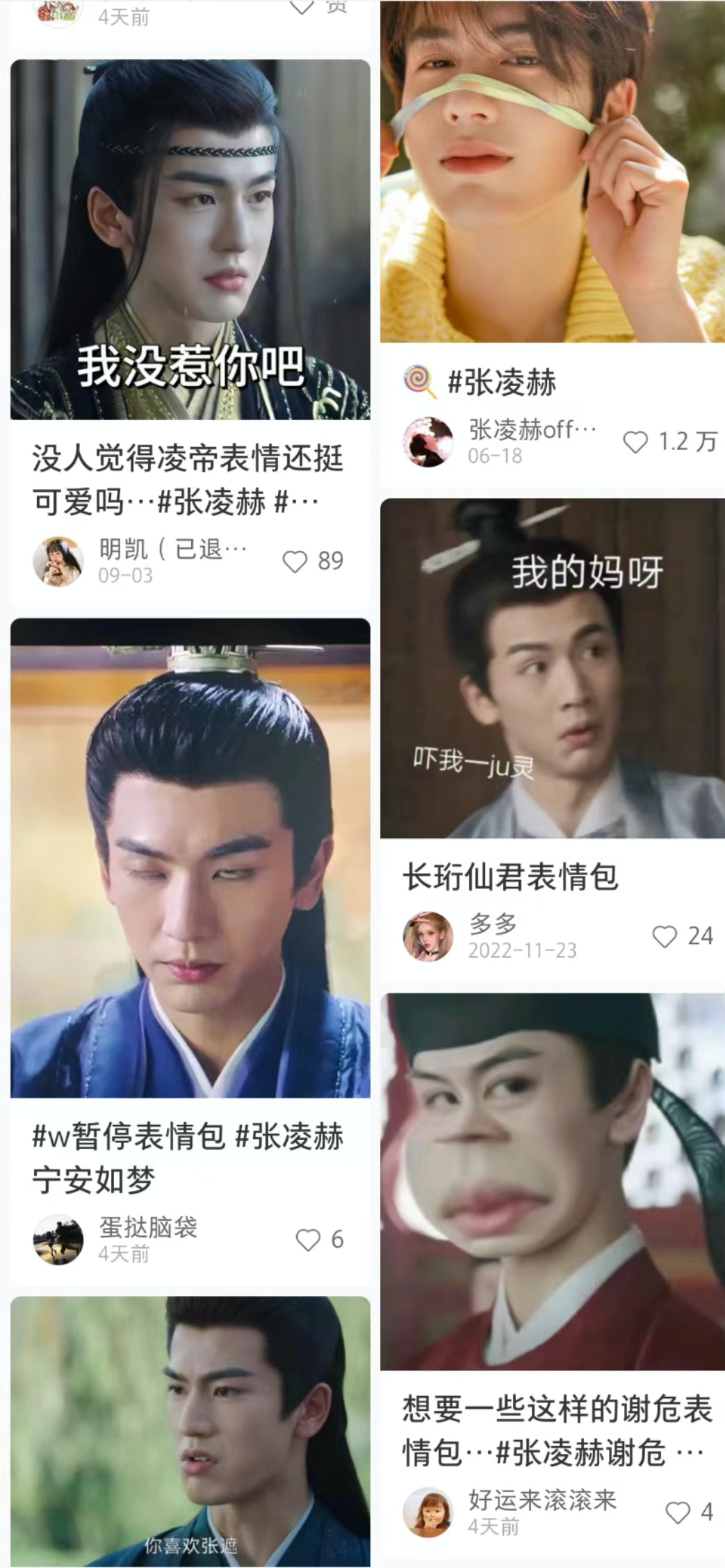 从角色性格或是导演把控的角度看,张凌赫此前出演的《苍兰诀》中的长珩仙君和《云之羽》中的宫子羽相对谢危而言更偏向内敛,谢危则无时无刻不在彰显强大、城府和掌控感,属于外向型角色,这也是张凌赫在剧中表情一旦过分用力便成为“表情包”的原因。翻看张凌赫的“表情包”集锦,无论是跌倒、壁咚、放狠话都写满了“用力过猛”。