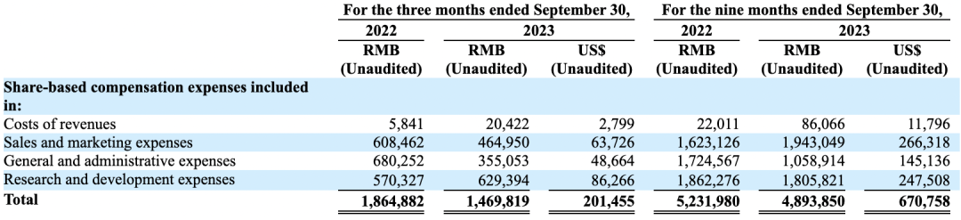 拼多多的费用情况,图源 / 拼多多2023年第三季度财报