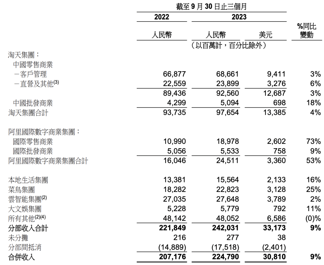 阿里各版块收入,图源 / 阿里2024财年第二财季财报