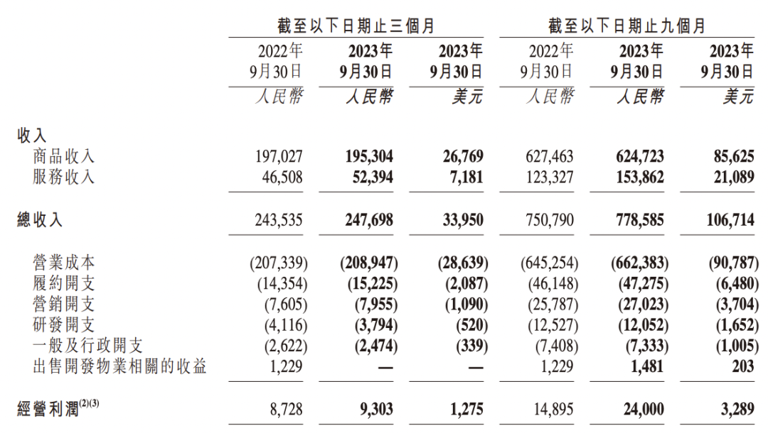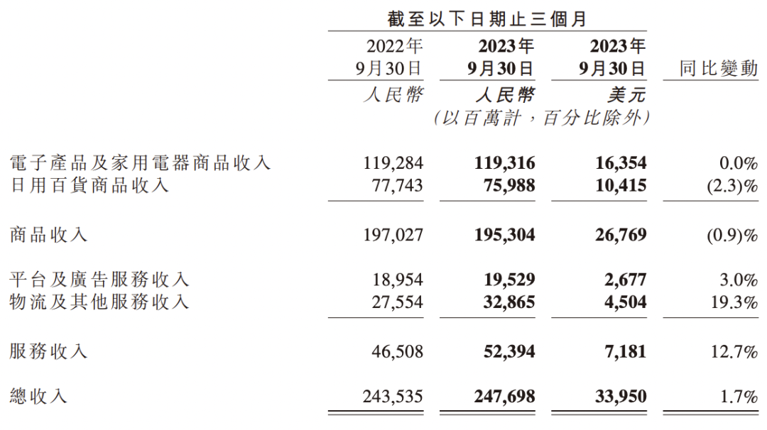 京东的商品收入及服务收入,图源 / 京东2023年第三季度财报