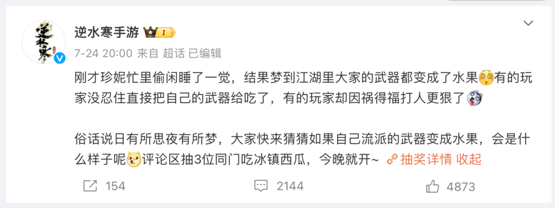 带着粉丝一起“疯”?《逆水寒》手游官微名,是就让玩家自己票选(票选出“真尼玛得劲”,于是官微自称“珍妮”)。
