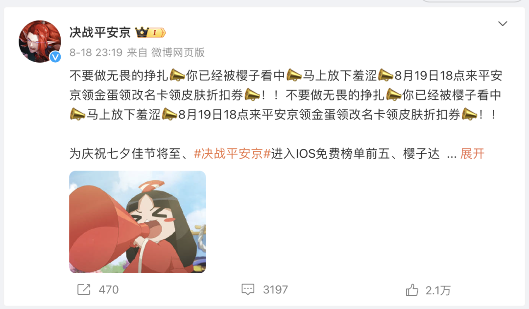 只在微博“发疯”,这一方面是两款游戏的主动选择;另一方面也是整个游戏行业,做微博营销的流量的困境、打法的无奈。