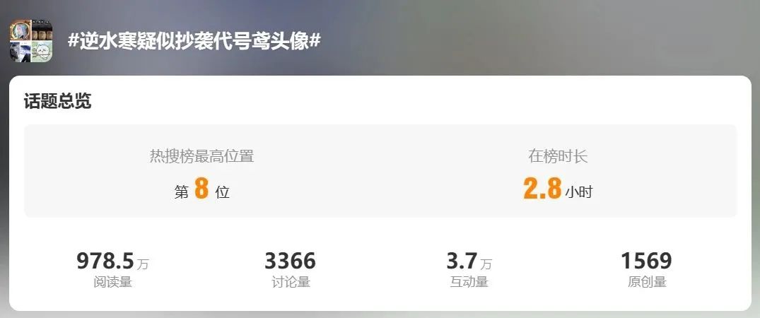 具体来说,微博这个娱乐大广场之于游戏行业,更适合放大娱乐化的舆论热点。往往是负面争议热点或者娱乐八卦热点,典型如近期“《逆水寒》抄袭《代号鸢》头像上热搜”。