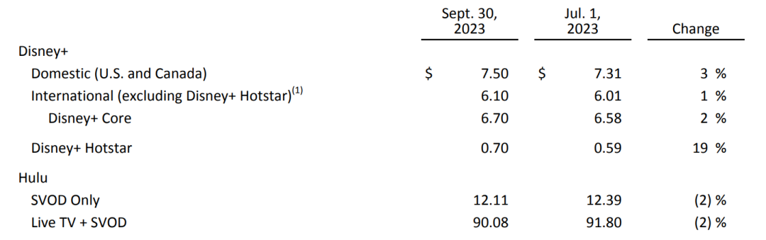 另外,迪士尼也在持续优化流媒体业务的变现率。在对Disney+和Hulu免广告套餐每月上浮3美元后,Disney+本土的单户每月平均收入提升近3%至7.50美元。