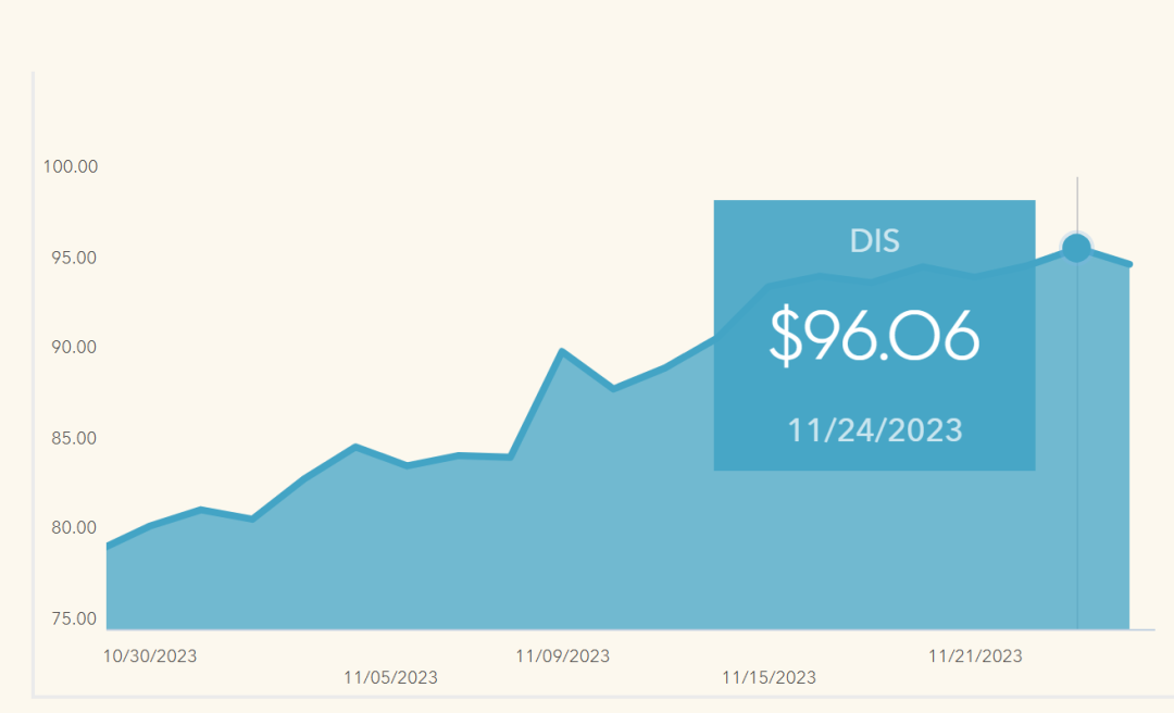 在财报发布后,迪士尼股价于9日跳涨6.9%至每股90.34美元,截至24日收盘时报于96.06美元,相较年初首个交易日高近8%。 过去三年间迪士尼股价经历“过山车”行情,一度在2021年3月8日触及201.91美元的历史新高,但随后由于市场波动叠加自身因素开始震荡下行,直到上月4日创下79.32美元的近十年最低谷,相比市值巅峰期跌去逾六成。在近期一连串利好的驱动下,迪士尼股价正逐渐走出向上的轨迹。