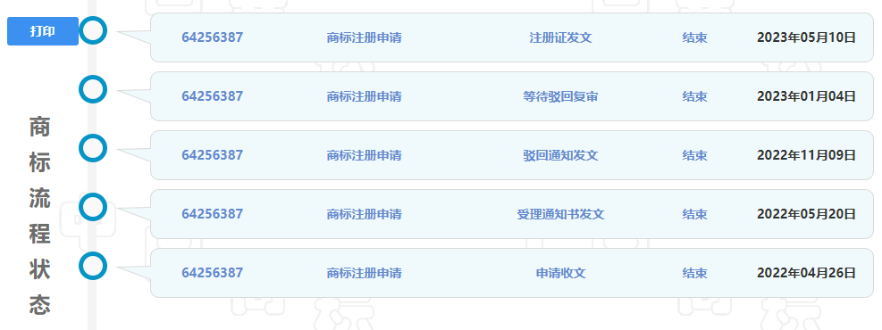 值得注意的是,该申请的初审被驳回过一次,通过复审方始通过。不知是否由于其它公司对初审公告提出异议造成的。