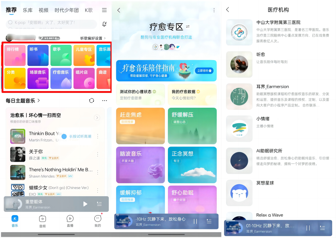 从单一的音频、音乐平台开始,再进阶到专门解压舒缓的应用,随后也在视频平台上开始出现。从高不可企到触手可及,音疗正逐渐走下神坛。