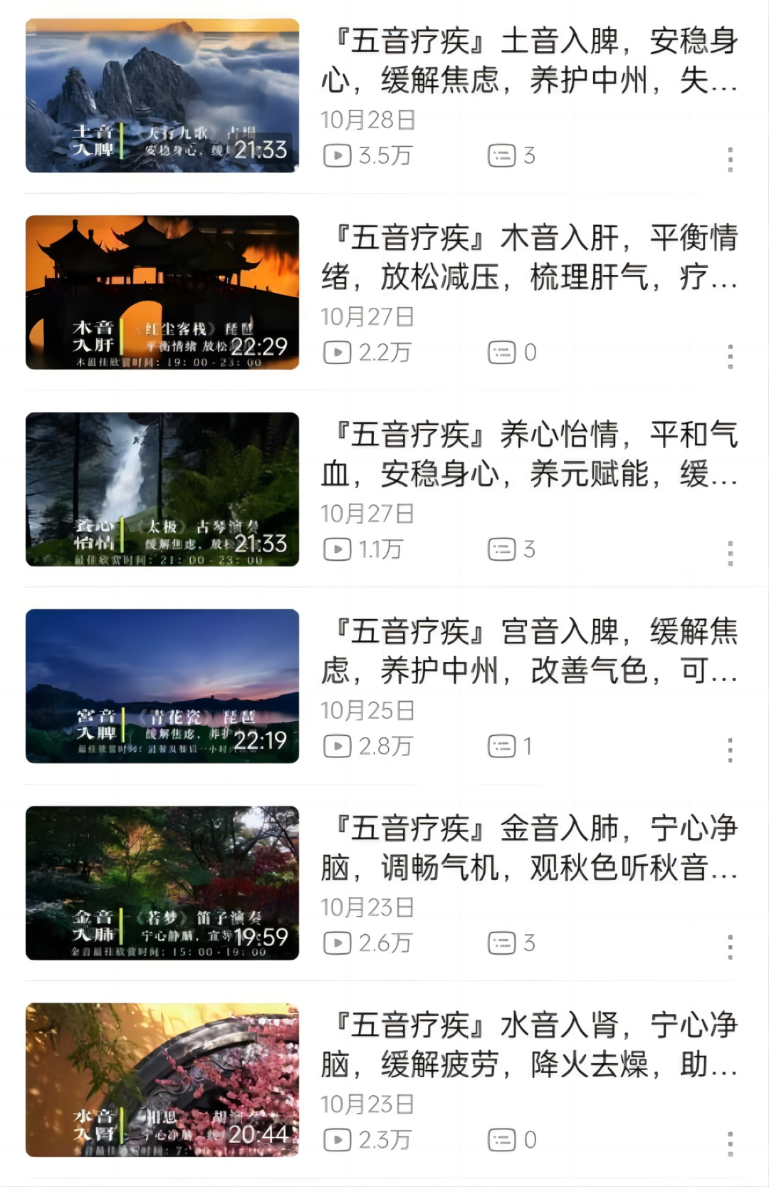 B站、抖音、视频号甚至小红书等也都有音乐疗愈的相关内容和直播。