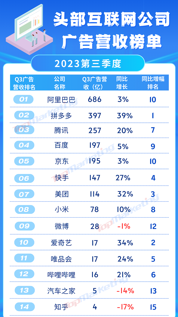 大环境下,虽然三季度在购物经济、假日节点等方面缺少利好因素,但多平台对“降本增效”战略的坚守和优化广告投放上积极布局,稳定的增长数据给予市场一份定心丸。长路漫漫,TOP君也期待第四季度和年末业绩报告中大厂们的好消息。
