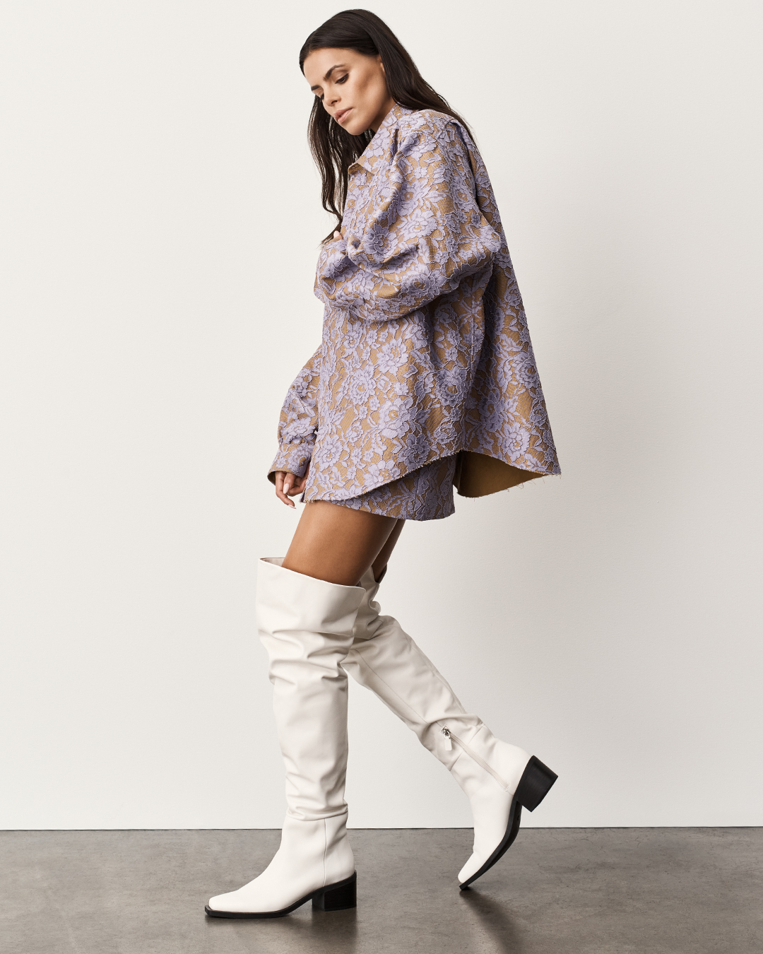 SW X AKNVAS SCRUNCH BOOT牛皮长靴是时下流行的堆堆靴款式,散发着慵懒随性的迷人风情,源自于西部牛仔靴的方形鞋头与4厘米舒适方跟又透露着硬朗帅气。