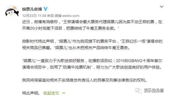 随着12月30日晚演唱会的成功举办,座无虚席的现场也印证了王菲依强大的号召力,与售票环节有关的争议也落下帷幕。回过头来回顾事件全程,可谓是一波多折。