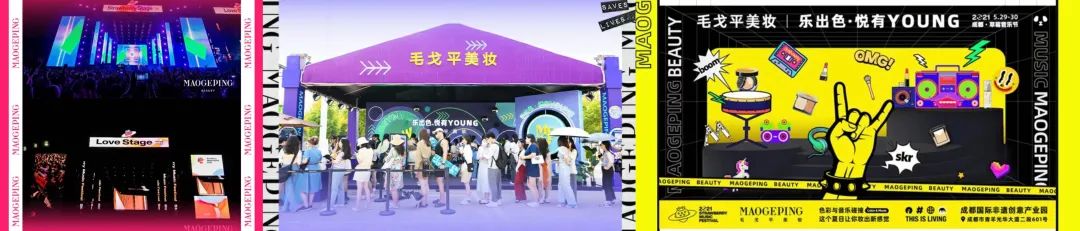 就比如毛戈平美妆,早在2019年就与长沙草莓音乐节合作,期间主要通过展台活动和产品体验触达消费者,至今也与草莓音乐节保持合作关系,如此看来毛戈平美妆似乎成了草莓音乐节的常驻搭子。