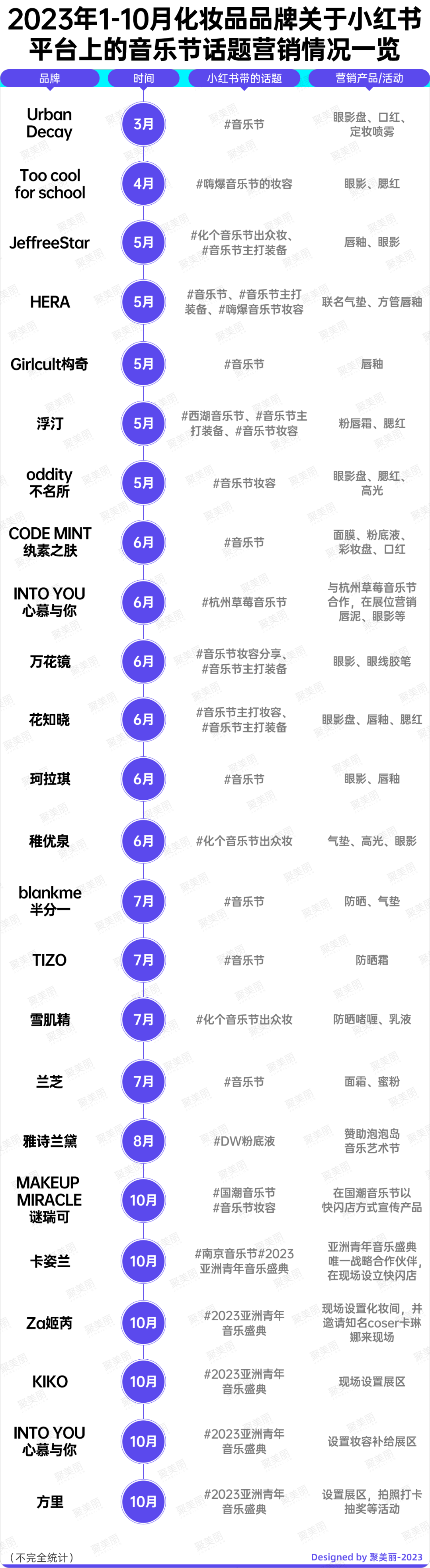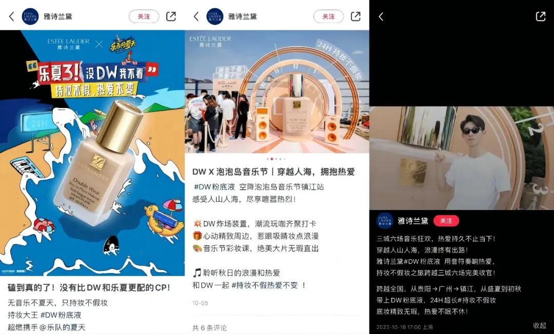 由上图来看,美妆和音乐节这对营销搭子的形式,可分为线上在社媒平台带话题营销、线下现场设置展位等。