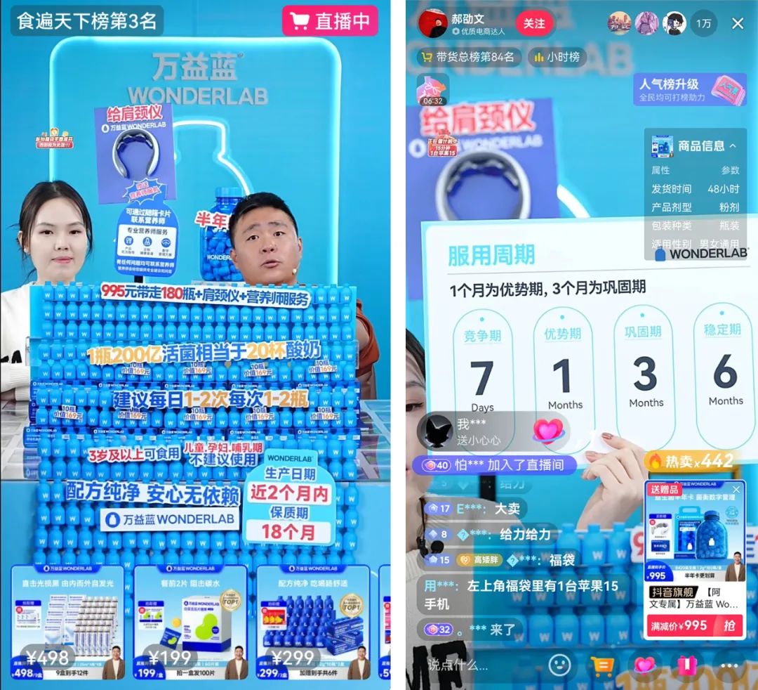 《白皮书》也佐证了榜单趋势。数据显示,52%的消费者主要选择益生菌等膳食营养补充产品。万益蓝和菌小宝的益生菌产品,都在抖音取得了销量增长。例如,万益蓝小胖瓶在抖音电商开新日GMV突破3400万元,超预期完成138%。