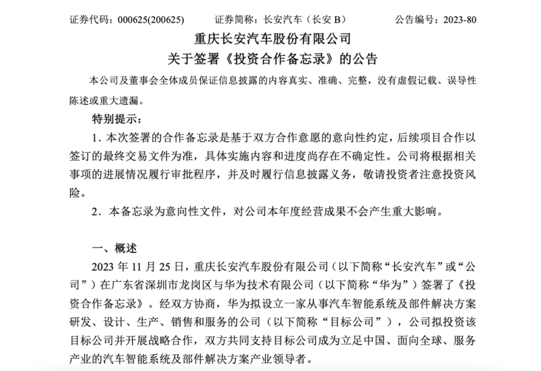 01 华为、长安组建新公司,赛力斯深夜发文表态