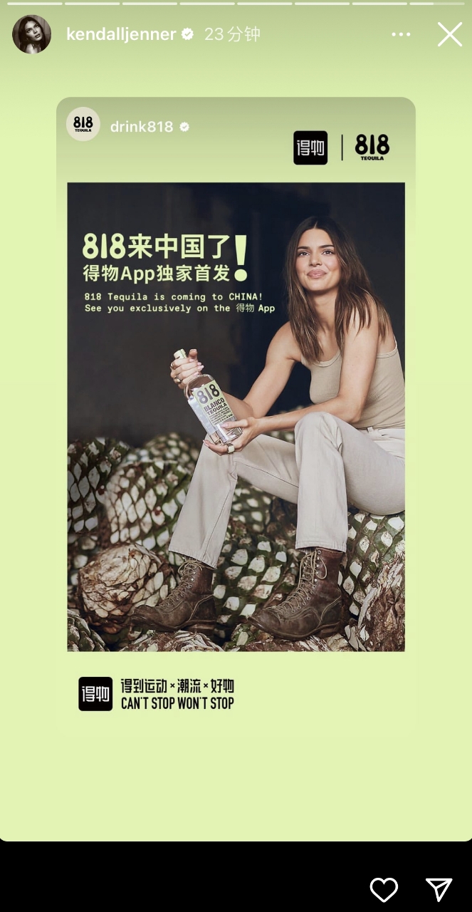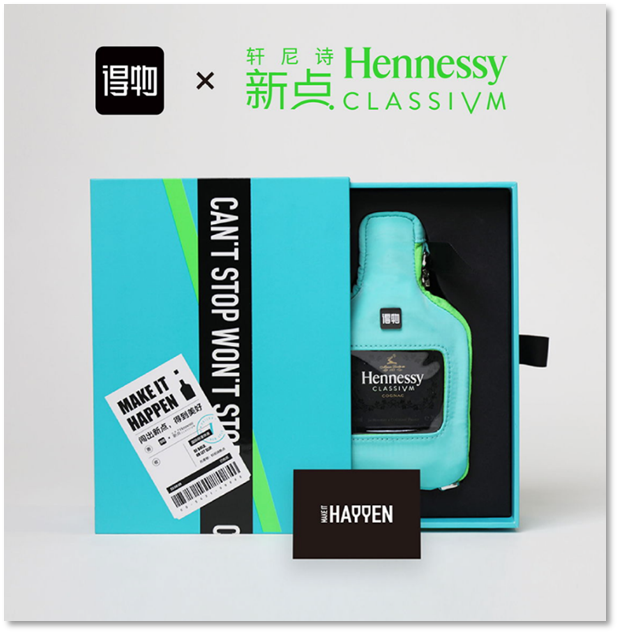 肯豆第一次带着个人酒水品牌818来中国,只在得物App独家首发,希望带给中国最潮的年轻人们最地道的龙舌兰体验。轩尼诗新点与得物App跨界合作时推出了联名礼盒,新品发售当天,得物与轩尼诗共同举办了跨界派对夜,各路潮人背着“极光蓝”和“新点绿”配色的潮流定制背包打卡,感受从舌尖到心头的微醺潮流。