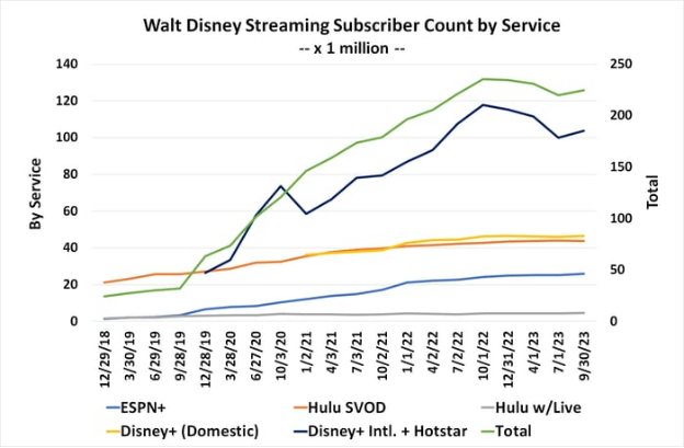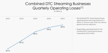 2022年四季度流媒体运营亏损15亿美元,而2023年四季度流媒体运营亏损4亿美元——光是流媒体开支减少的部分就占集团全部开支节省的85%。