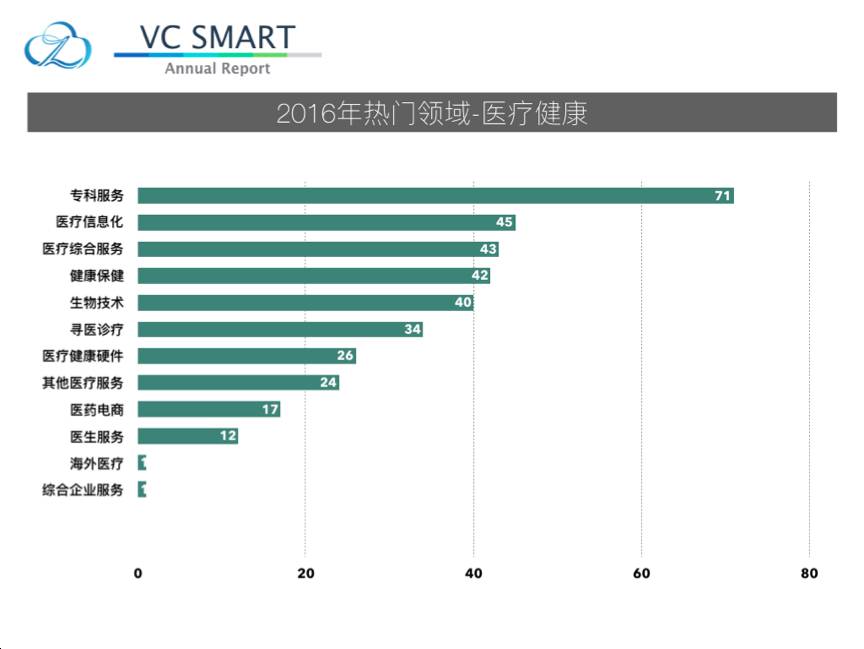 移动医疗圈估值超过十亿美金的六家公司:挂号网,春雨医生,好大夫,丁香园,寻医问药和平安好医生,六家各霸一方。为了有差异化的产品功能、商业模式,更多公司选择了较为垂直领域的打法。这也是为什么今年医疗健康领域专科服务占大头的原因。