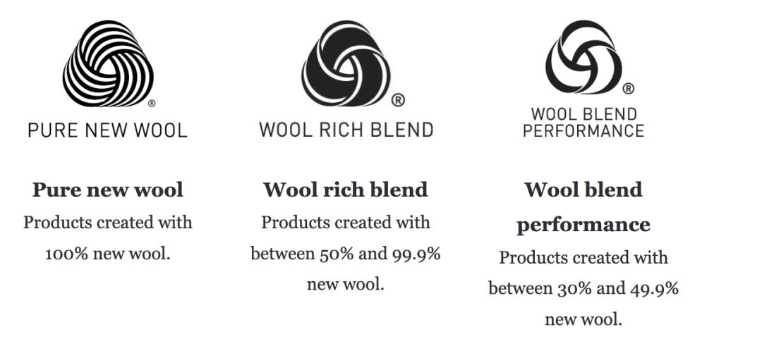 国际羊毛局主要与澳大利亚的牧民合作,开展澳大利亚羊毛的研究、开发和认证工作。根据纤维含量,国际羊毛局对羊毛服饰授予了「PURE NEW WOOL」、「WOOL RICH BLEND」 、「WOOL BLEND PERFORMANCE」三类认证标志去推广真正的澳洲羊毛。