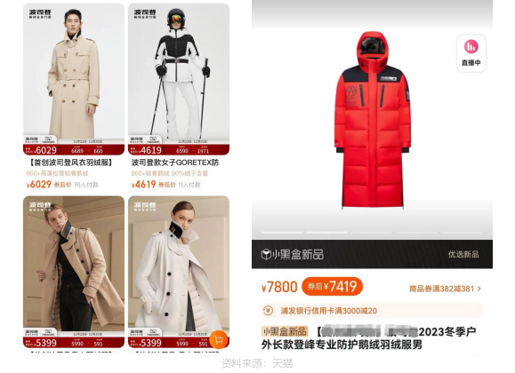 面对这波风潮,社媒电商平台似乎反应更为迅速,已经开始大卖中低价格区间的羽绒服及其他平替产品。
