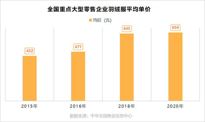 羽绒服涨价现象是个不可否认的事实,并不是消费者主观感受。数据显示,2015年至2020年,中国羽绒服平均单价由432元涨到656元。大型防寒服的价格突破1000元,其中2000元以上的占比接近70%。