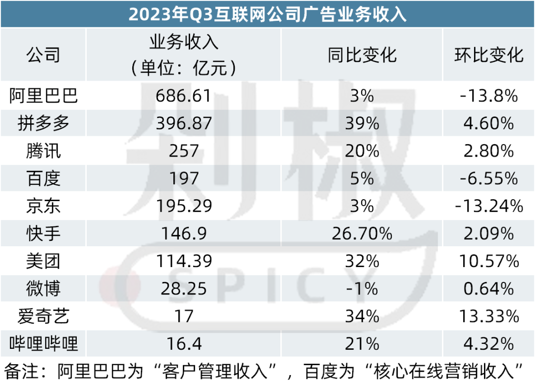 将拼多多财报放之经济增速放缓、互联网红利消失的大背景下,其涨势之凶猛确实足够惊人。即便在电商稍显冷淡的三季度,拼多多主要营收增长点——广告收入依然以同比39%的增速,在一众互联网大厂中稳居首位。