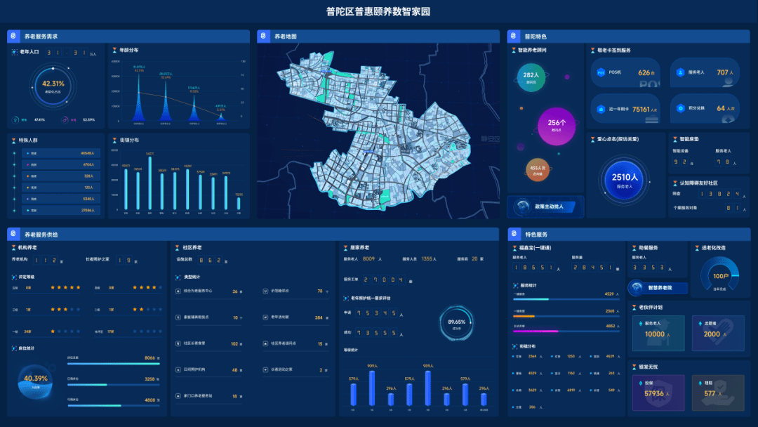 持续优化普陀区综合为老服务平台建设,以“全过程记录、全流程监管、全数据互通”为要素,基本形成集老年人基本信息和全区养老服务资源信息于一体,打造服务载体、服务内容和服务对象有效串联,市、区、街道、机构互联互通、数据共享的养老综合信息管理服务智慧平台。
