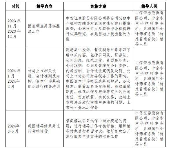 根据备案报告,中信证券与万香科技于2023年11月9日签署辅导协议,辅导期为2023年11月至2024年5月。