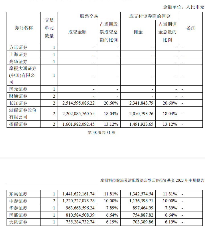 2023年上半年,摩根科技前沿混合共产生交易佣金1136.83万元,在摩根基金旗下所有产品中居首。