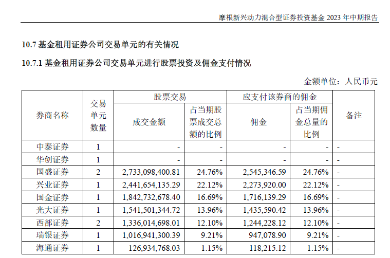数据显示,摩根新兴动力混合上半年支付给国盛证券、兴业证券、国金证券等机构的佣金规模较大。