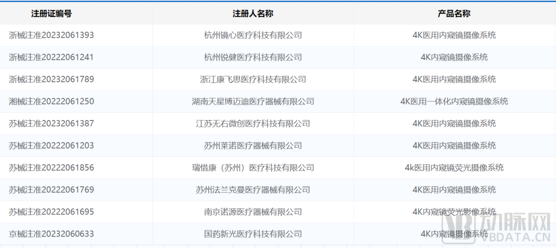 事实上,4K技术在我国内窥镜领域的应用已经较为常见。我们以关键词“4K”在国家药监局官网数据查询页面进行搜索,发现目前已有113款4K内窥镜获批上市,其中绝大多数为硬镜产品。