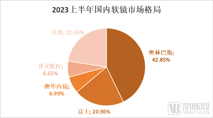 软镜领域,相比于2021上半年奥林巴斯、富士、宾得垄断市场份额前三,2023上半年国内厂商终于挤进了软镜市场排行榜前列。众成医械统计的数据显示:2023上半年,国内公立医院软镜中标排名中,澳华内镜和开立医疗分别占据第三、第四位,打破了以往海外品牌包揽前四的市场格局。