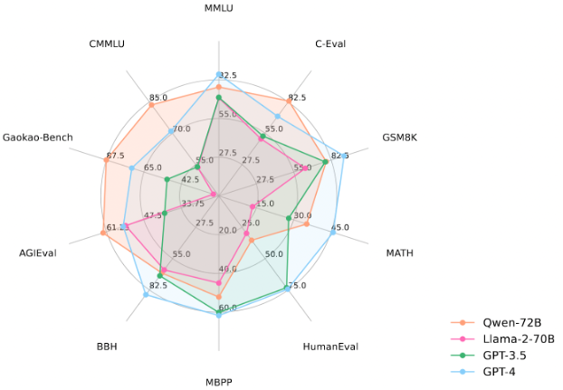 基于Qwen-72B,大中型企业足以开发各类商业应用,高校、科研院所则能够开展AI for Science等科研工作。