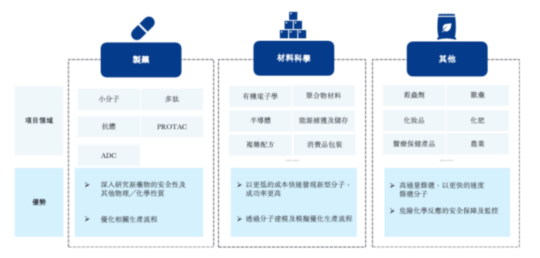 对应到晶泰科技身上,公司将这些工具一开始用于生物医药研究,未来工具的价值则会辐射到更广泛的产业范围内。