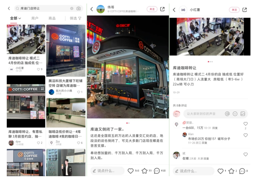 有数据显示,2023年上半年,库迪咖啡以318家的闭店数位列连锁咖啡品牌第一。另据观测,下半年以来,社交平平台上有关“库迪咖啡门店低价转让”的帖子也不少。其中,不少联营商表示“每日出杯量在不断减少,从500、600下滑到100、200杯等。”